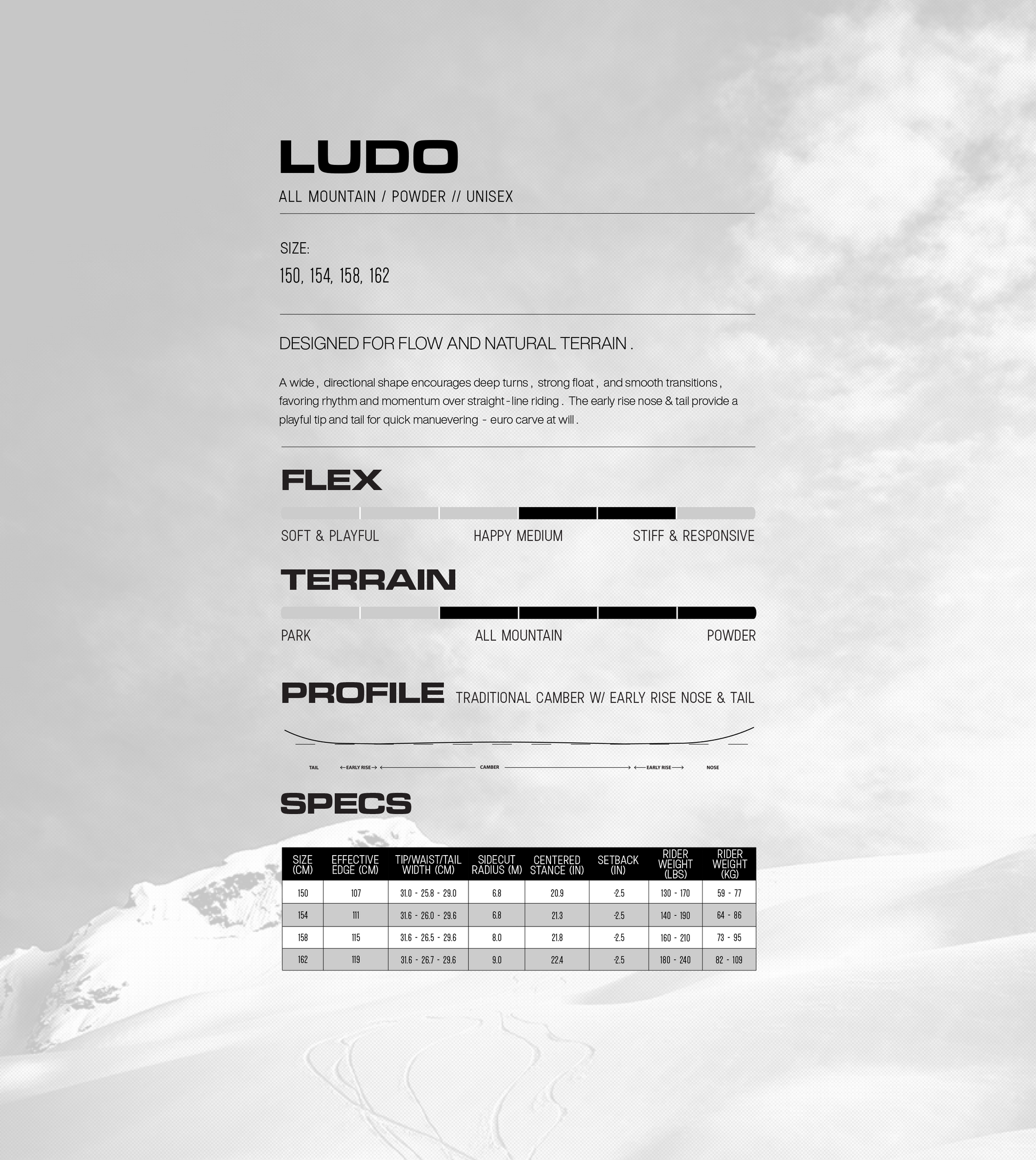パウダーを爆走することも、この1本で可能すにするLUDO。