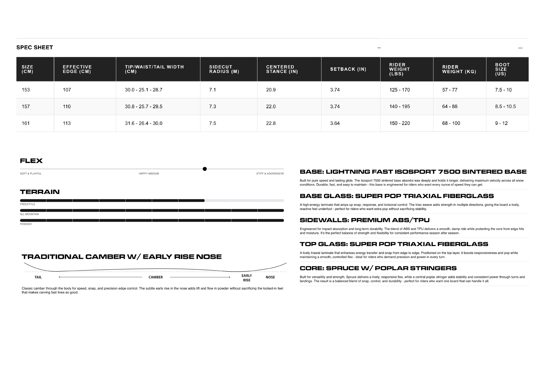 The Yup is a directional powerhouse built for speed, control, and all-mountain domination. Developed in collaboration with Pickle Stix and Erik Sandin, its tapered sidecut delivers smooth, powerful carves. Traditional inserts provide a familiar, reliable stance setup, while the shape brings surf-inspired flow from groomers to banked slaloms and powder.